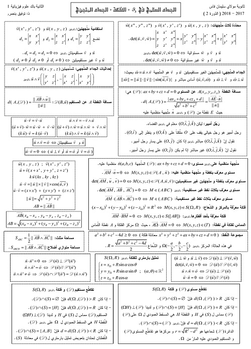 ملخص درس الهندسة الفضائية الجداء السلمي الفلكة الجداء المتجهي