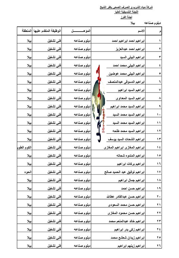 بالصور ننشر أسماء المقبولين بوظائف مسابقة شركة مياه الشرب والصرف الصحى بكفرالشيخ جريدة مع الناس نيوز