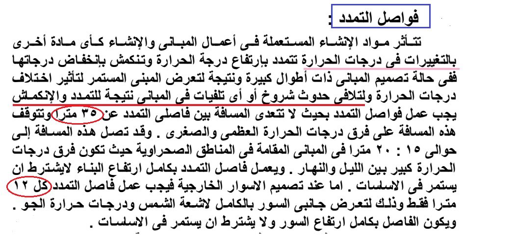 مهندس عبدالغني الجند A Twitter فاصل التمدد يكون من 40 60 متر 1 كلما كانت المنطقة حارة كانت المسافة بين الفاصل و الذي يليه اقل واقتربت من الـ 40 متر 2 كلما