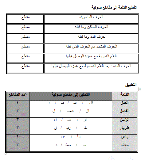 بالصور شرح طريقة تقطيع الكلمة الى مقاطع صوتية