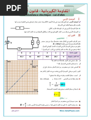 المقاومة الكهربائية قانون أوم السنة الثالثة اعدادي Pdf فيديو توضيحي Https Ift Tt 3cwgk5g In 2020 La Resistance