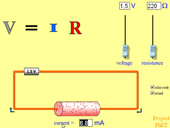 قانون أوم الدوائر التيار المقاومة Phet فيت