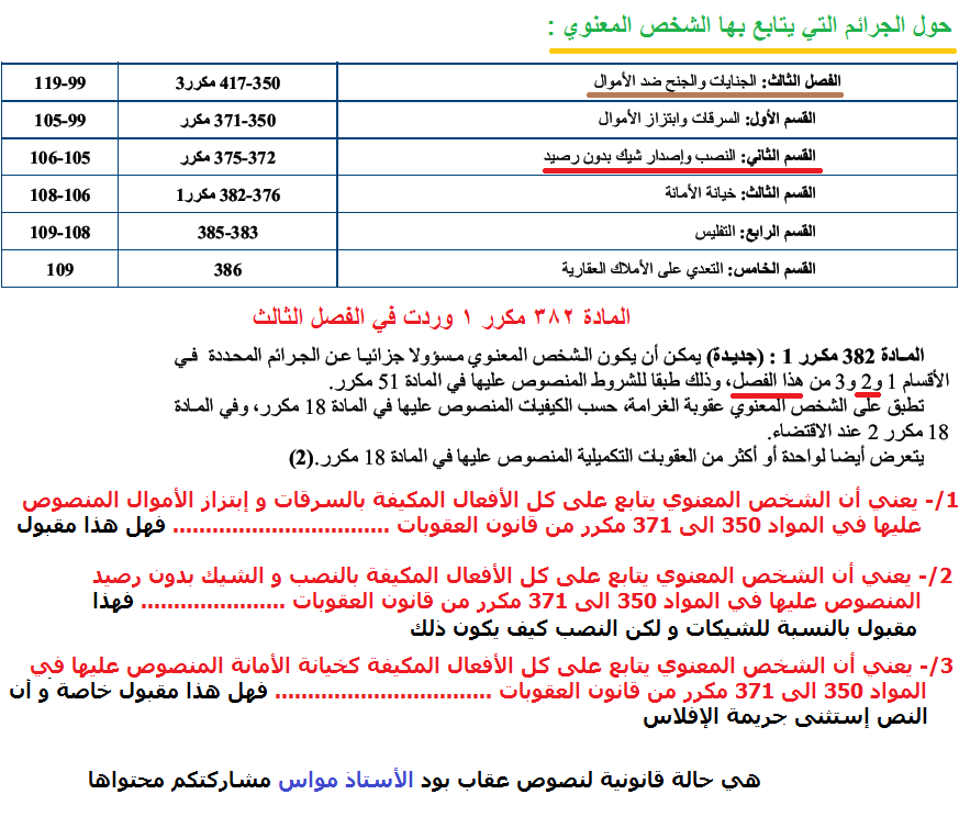 ملخص قانون العقوبات جميل فقط يرجى من التحضير لمسابقة المدرسة العليا للقضاء فيسبوك
