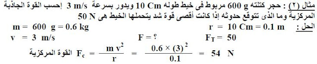 مسائل على قوة الجذب المركزية في الحركة الدائرية