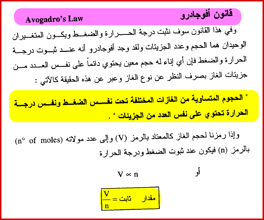 قانون أفوجادرو Avogadro S Law مصطلحات كيميائية