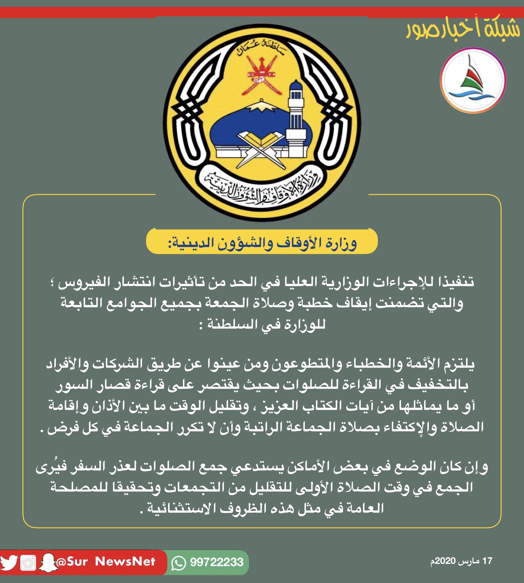 شبكة أخبار صو ر Pa Twitter الأوقاف قراءة قصار السور وتقليل الوقت ما بين الأذان والإقامة