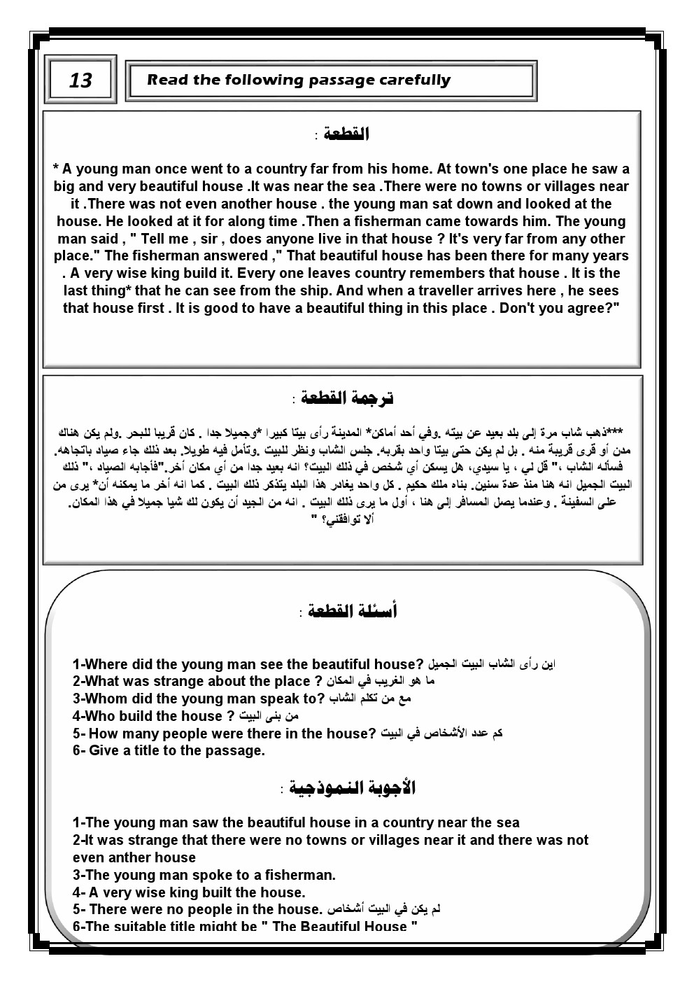 قطعة خارجية باللغه الانجليزية مع الأسئلة