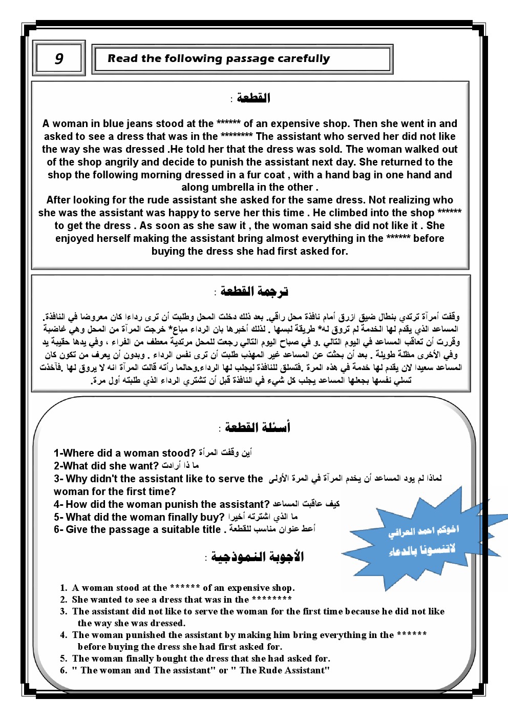 قطع فهم باللغه الأنجليزيه كما وردت بأسئله الرئاسه بنات قطع انجليزي تحميل التعديل الأخير تم بواسطة دعم المناهج. زاوية الخوامس 5th grades. قطع فهم مع اسئلة.