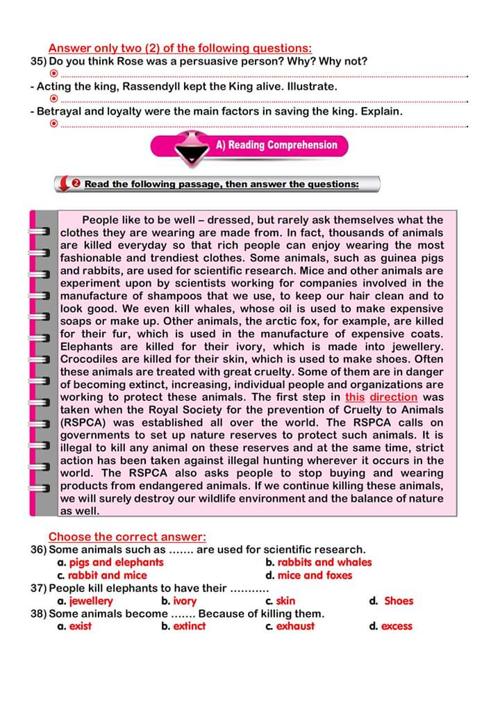 قطع انجليزي واسئلة عليها