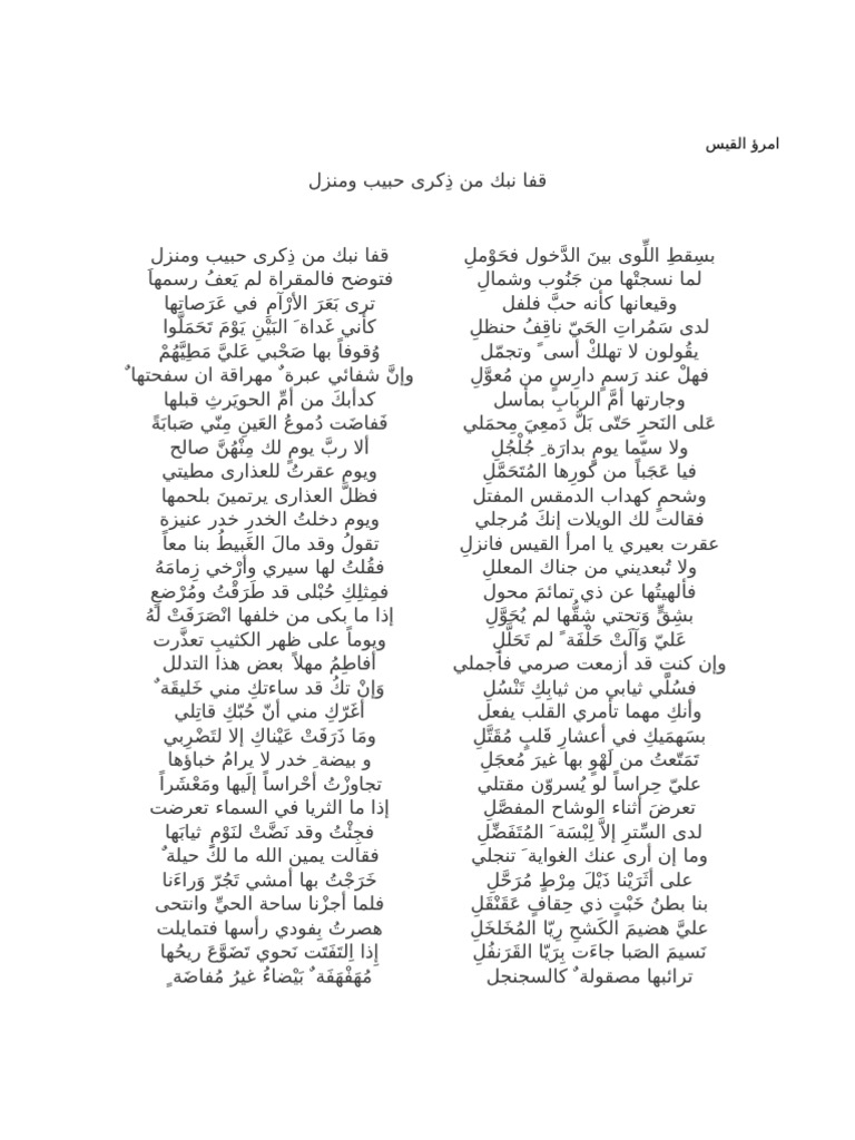 امرؤ القيس قفا نبك من ذ كرى حبيب ومنزل