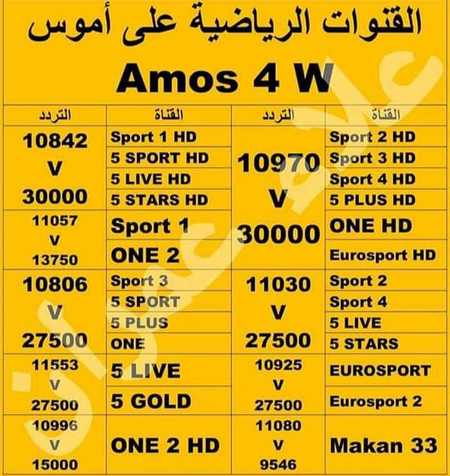 Sat Sport Twitterren القمر اموس 4 غرب واحد من افضل اقمار الشيرنج ينقل اغلب الاحداث الرياضية يلتقط بسهولة جدا بدول الشرق الاوسط باطباق تبدء من 60 سم يمتاز عن باقي اقمار الشيرنج