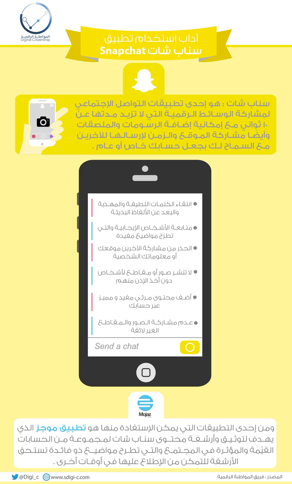 المواطنة الرقمية Na Twitteru انفوجرافيك آداب استخدام تطبيق سناب شات التي تندرج تحت قواعد السلوك الرقمي