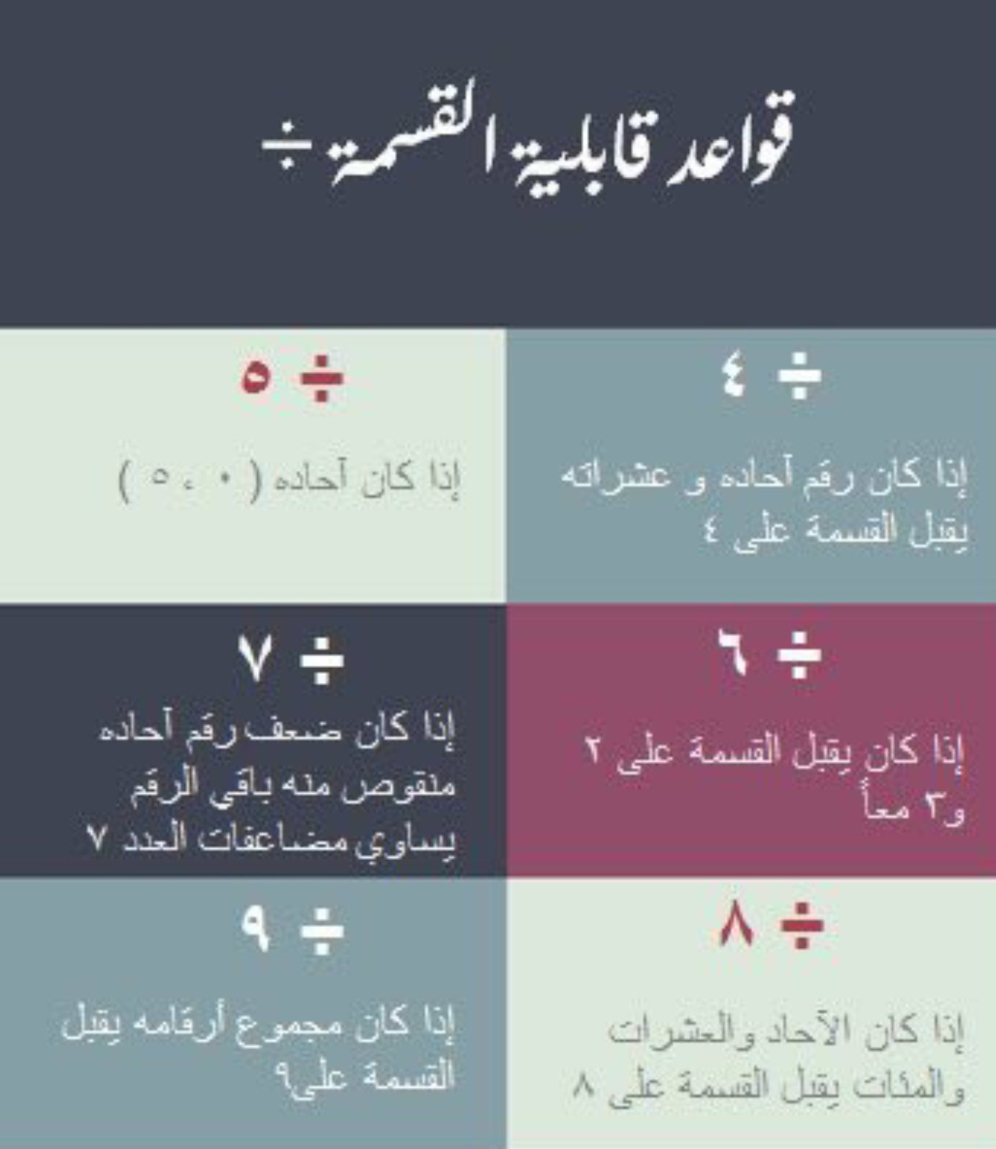 O Xrhsths Fathia Al Ajlan Sto Twitter معلومات هامة قواعد قابلية القسمة على كل من 4 5 6 7 8 9 عمليات حسابية رياضيات Mathematics Https T Co Rwlvd9bw0c