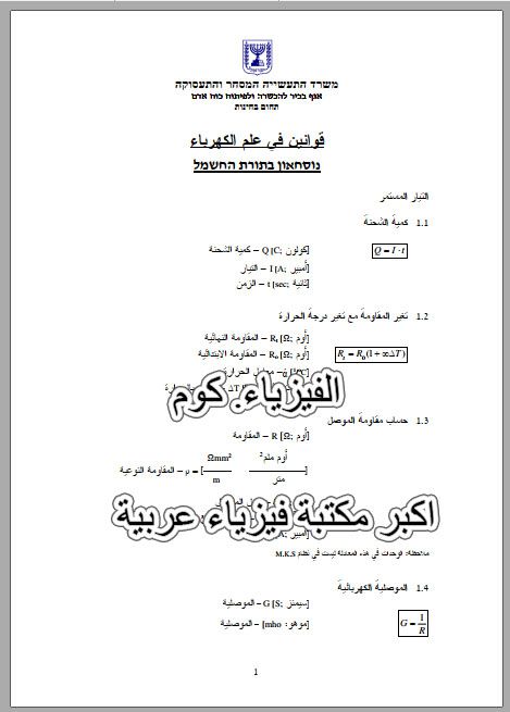 ملخص قوانين الكهرباء في الفيزياء Pdf كاملة برابط مباشر