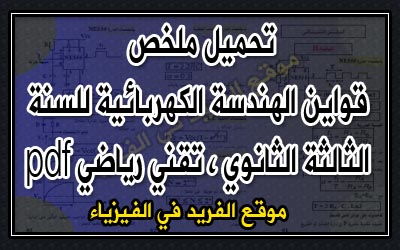 تحميل كتاب ملخص قوانين الهندسة الكهربائية للسنة الثالثة ثانوي تقني رياضي Pdf مكتبة نور لتحميل الكتب الإلكترونية
