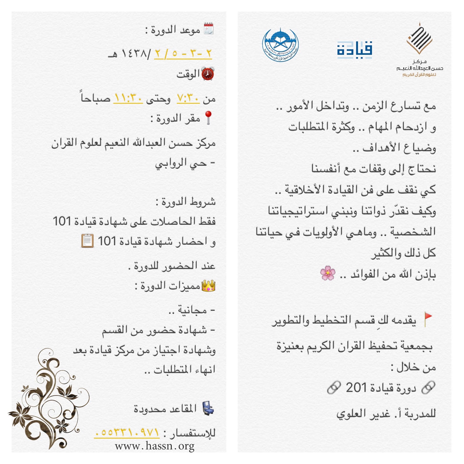 مركز حسن عبدالله النعيم لعلوم القرا ن الكريم إقامة دورة قيادة 201 بداية الشهر القادم